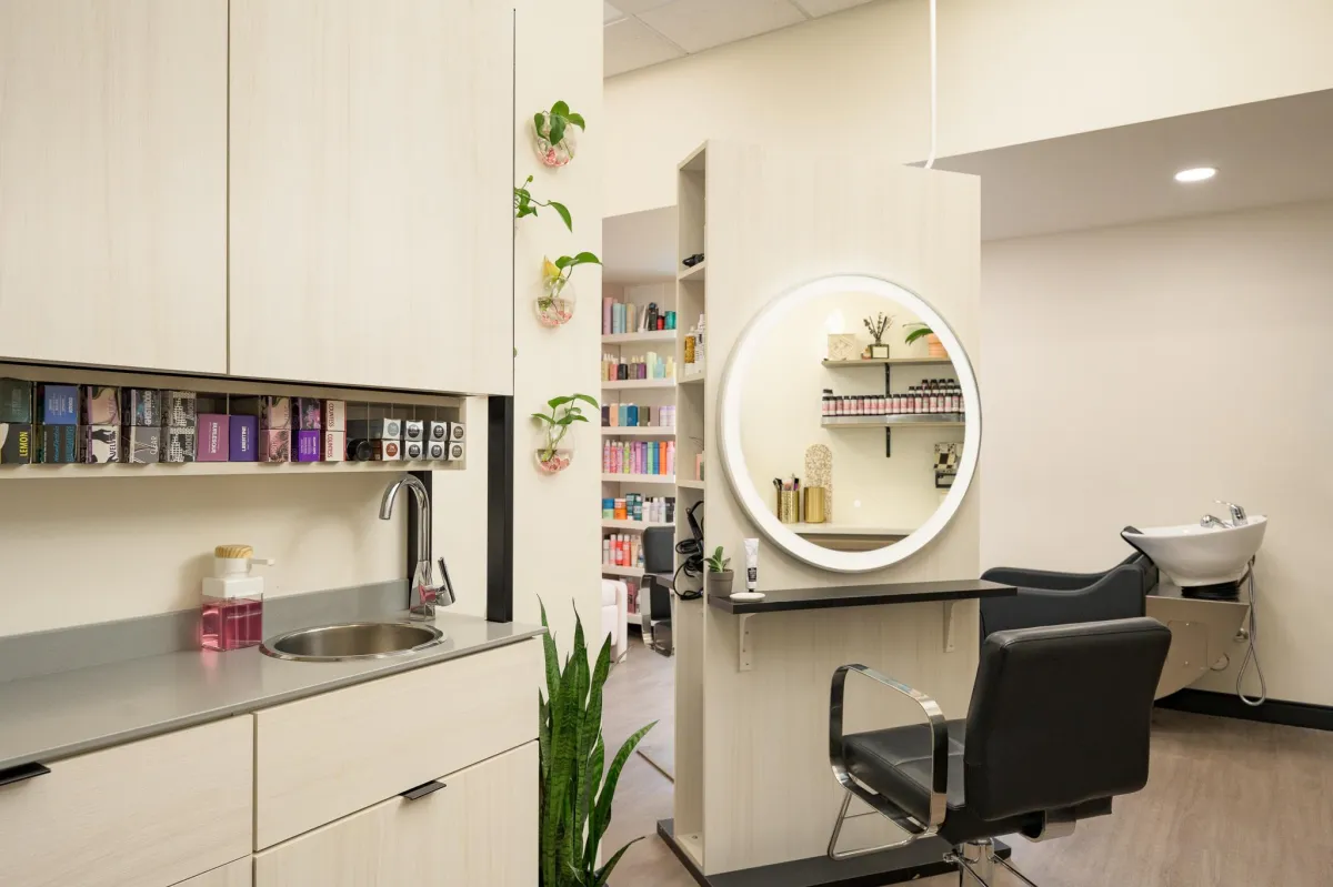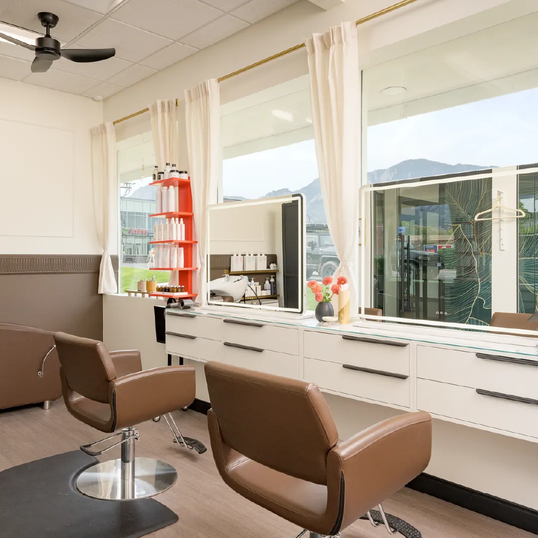At IMAGE Studios, your suite includes everything you need to elevate your brand and delight clients from 'hello' to 'see you next time.' Every suite comes fully equipped with a shampoo bowl, styling chair, custom cabinetry, mirror, specialty lighting, and in-suite climate control, ensuring both you and your guests enjoy ideal temperatures year-round. Plus, enjoy added perks like free laundry services, mini-fridges in every suite, in-suite professional cleaning services, our loyalty program that includes free rent, and so much more!